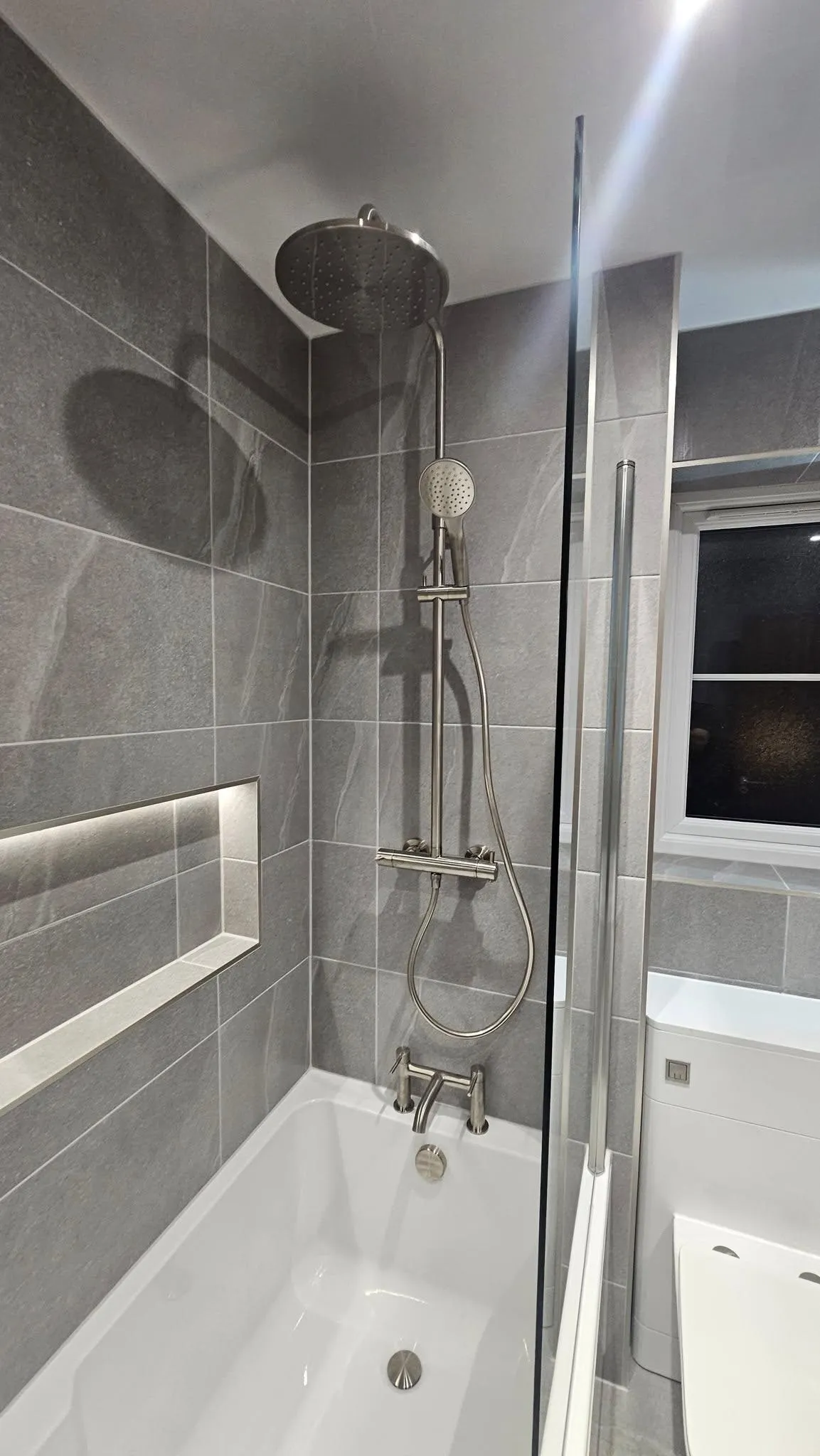 "I'm in love with my stunning new bathroom completed to the highest standard by Carl and Jamie. I showed Carl what I had, and what I wanted to achieve, and without fuss every detail was taken care of from floor levelling, tanking, and plastering, to plumbing, tiling and electrics. All the little touches I hadn't even considered were handled, and I couldn't be happier with the outcome. Thank you!"