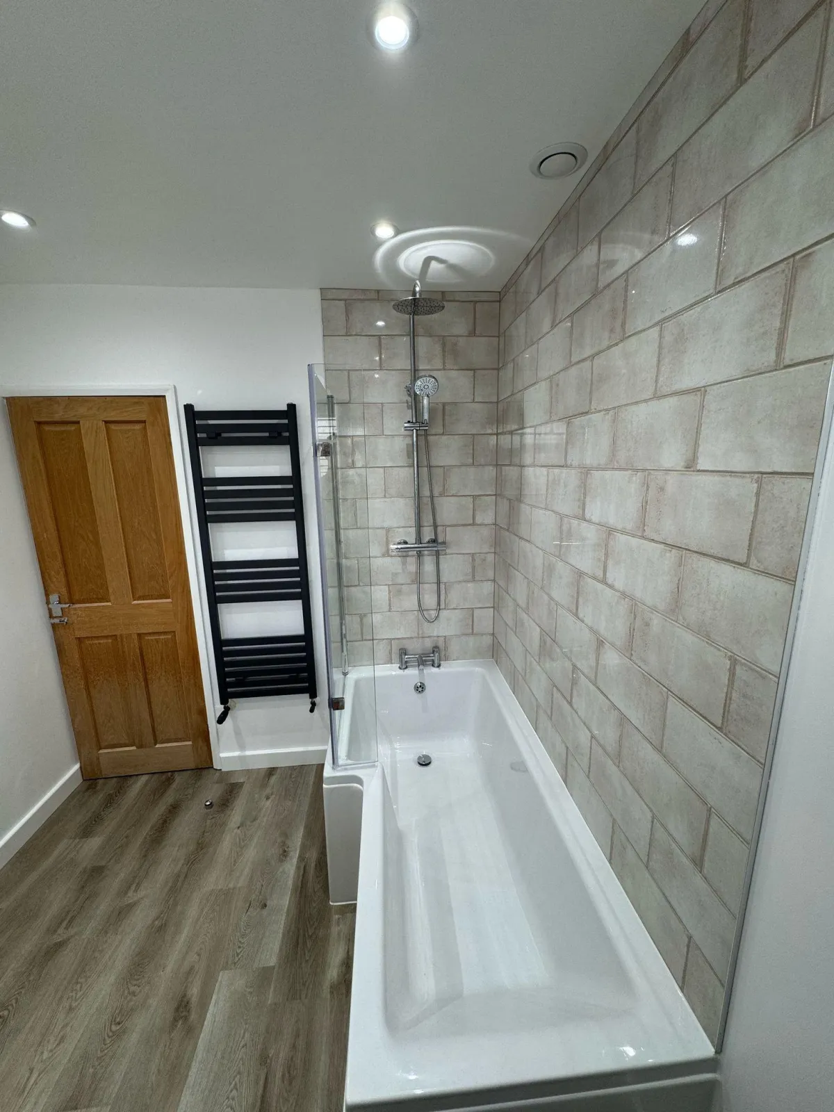 "We have recently just had our new bathroom fitted by Carl and his knowledge, experience and skill set was exceptional throughout. Nothing was too much trouble, Carl turned up when agreed, ensured all of our flooring throughout the house was protected/covered and was tidy during the whole week whilst renovating our previous tired bathroom suite, plastering and fitting the flooring/ skirting. From start to finish, Carl was friendly and polite and worked none-stop throughout. His attention to detail is outstanding- that much so my family are booking him in to upgrade their bathroom suite. I would highly recommend Carl not only for bathrooms but also general building work, renovations and underfloor heating/flooring. We can’t wait to have you back for our extension project this summer. Thanks once again! 10/10 for skill."